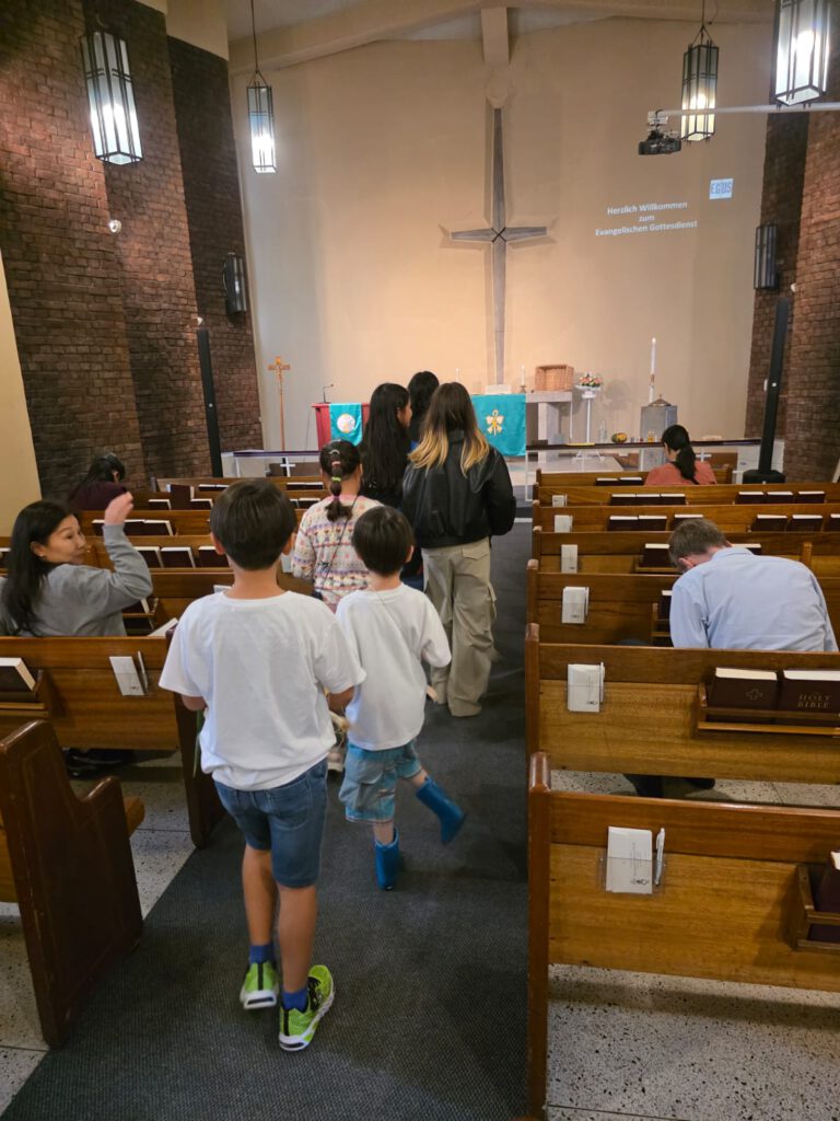 neben traditionell vertrauten Erntedankliedern wagten wir uns an dieses ursprünglich koreanische Erntedanklied. Der Rhythmus etwas fremd, für die koreanischsprachig kirchlich sozialisierten Menschen unter uns doch irgendwie vertraut. Auch nächsten Sonntag wollen wir dieses Lied im Erntedank-Gottesdienst in Busan singen und so die Verbundenheit zur deutschen Kirchengemeinde in Potsdam zum Ausdruck bringen, die uns auf diese Idee gebracht hat.